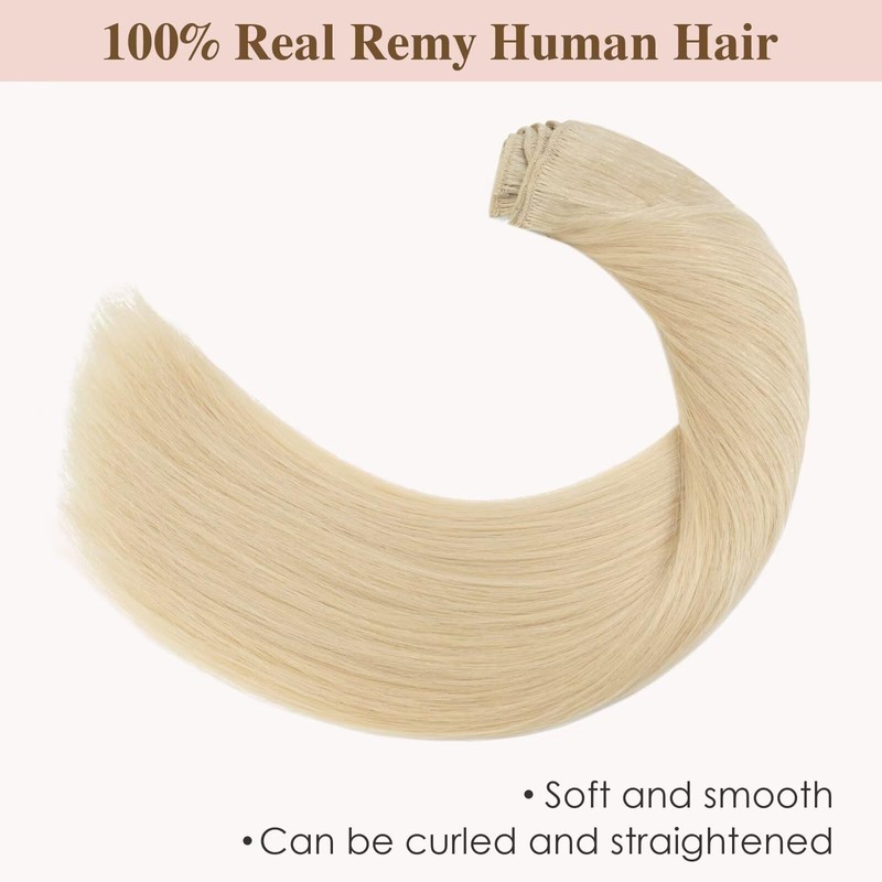 TESS Real Hair Clip-In Hair Extensions, Standard Weft, Grade 7A, Long & Straight Remy Human Hair, 8 Wefts, 18 Clips 50 cm #613 Light Blonde