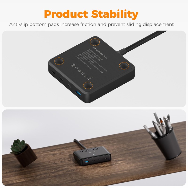 - [Universal Compatibility and Stability] - This multi usb charging station supports PD 3.0/QC 3.0 and is compatible with MacBook Pro/Air, Dell XPS, iPhone 16/15, Samsung Galaxy S24/S23, Steam Deck, AirPods, and more. Four anti-slip rubber pads on the bottom increase friction to prevent sliding and displacement, firmly grasping the desktop.