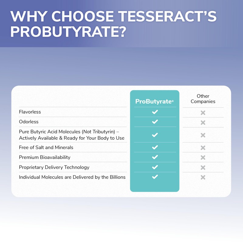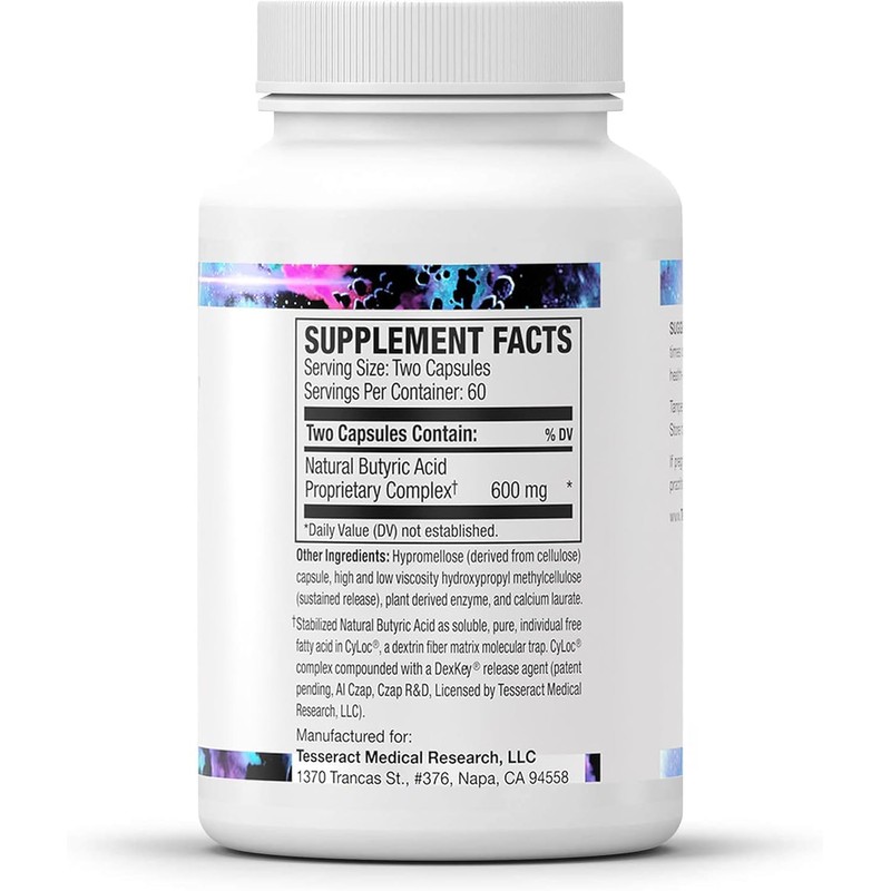 Tesseract Medical Research ProButyrate Gut Health Supplement, Butyric Acid Complex, Gastrointestinal Support Supplement, Helps Restore Balance to Stabilize Gut Microbiome, 600mg, 120 Capsules