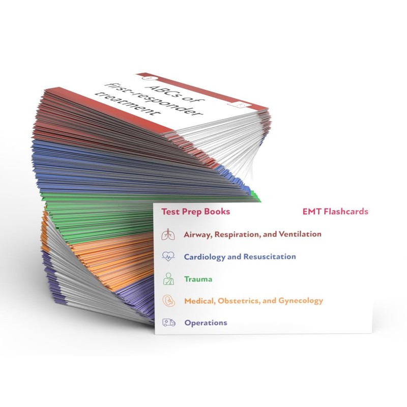 Test Prep Books' NREMT Exam EMT Flash Cards Study Guide and Practice Questions for the Emergency Medical Technician Exam [Full Color Cards]Developed by Test Prep Books for test takers trying to achieve a passing score on the EMT school test, these flash cardsStudy TipsAirway, Respiration, and VentilationCardiology and ResuscitationTraumaMedical, Obstetrics, and GynecologyOperationsIn addition to covering every section of the exam, these flash cards are packed withReady to These flash cards come ready to use so you can start studying immediatelyColor Each flash card is color coded for easy identification of the subject areaIncludes Study Study tips are included to help maximize your exam prep!Improves Flash cards are proven to improve memorization These flash cards are easy to transport, making it easy to study wherever you areEach section of the test that is covered has flash cards created by Test Prep Books with the high points of what you need to know that is likely to appear on the EMT certification exam.Anyone planning to take this exam should take advantage of these Test Prep Books EMT practice test flash cards.