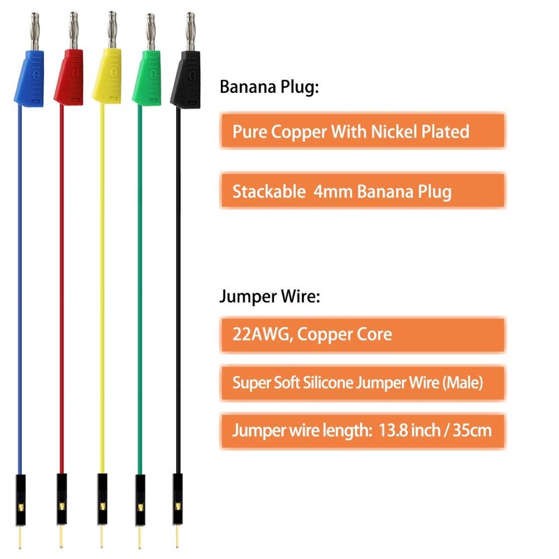 Toolless Stackable Banana Plug with 13.8inch/35cm 22AWG jumper wire(Male),Copper Core.