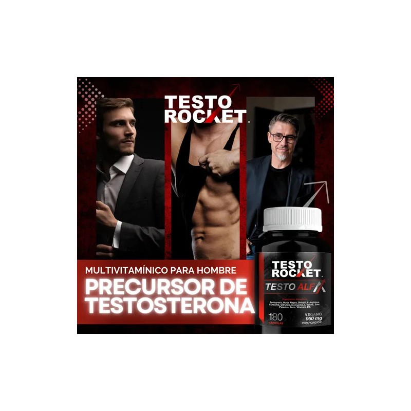 ¡ELEVA TUS LÍMITES CON EL NUEVO TESTO ALFA DE TESTO ROCKET: Descubre el poder de Testo Rocket ALFA, el multivitamínico exclusivo superior para hombres que redefine el rendimiento, la energía y el bienestar masculino!
