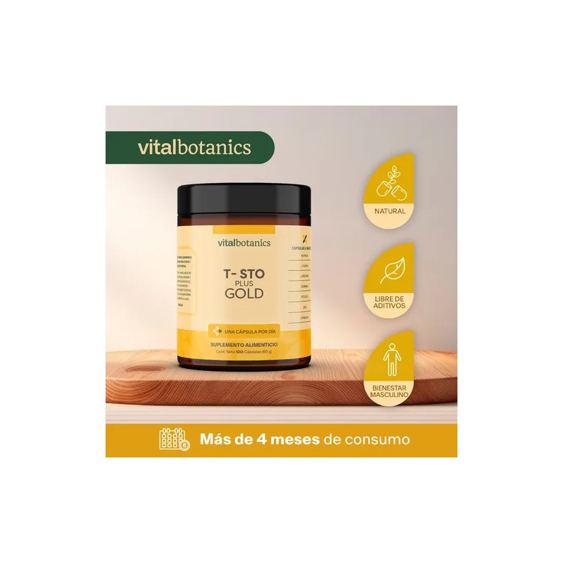 Testo Plus Gold 120 Capsulas 500mg Suplemento Vitalbotanics Sabor Sin sabor