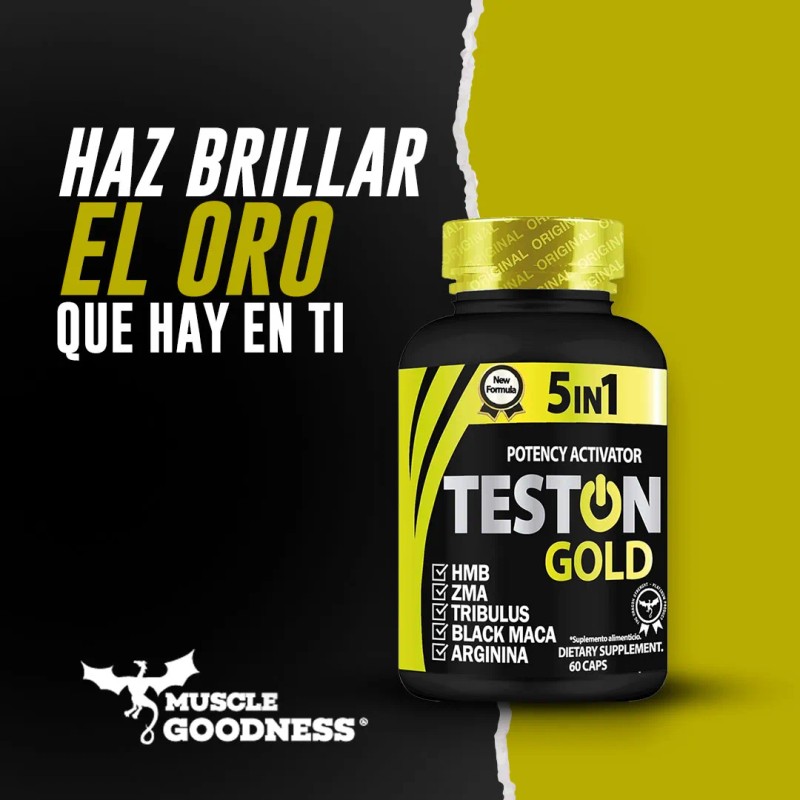- Teston Gold 60 Cápsulas Fórmula potenciadora natural de la testosterona que promueve el aumento de masa muscular, la fuerza y la resistencia. Además, favorece el bienestar, la energía, la vitalidad y el vigor para rendir físicamente tanto dentro como fuera del gimnasio. ABROJO DE FLOR AMARILLA Ejerce su función natural sobre la testosterona y la libido, al incrementar naturalmente la testosterona, se fomenta la masa muscular, así como también actúa sobre el estado de ánimo, disminuye el peso de forma rápida, ayuda a conseguir un sueño reparador, protege el sistema cardiovascular y se utiliza para evitar los dolores musculares crónicos. MACA NEGRA Funciona como reconstituyente energético gracias a la cantidad de vitaminas anteriormente mencionadas. Combate la falta de energía, por ejemplo, mejora la resistencia física y mental, de ahí que sea muy utilizada por deportistas. La maca es un tónico nervioso natural muy efectivo. Sin llegar a ser un fuerte relajante o un sedante en sí, facilita la relajación y ayuda a reducir los niveles de estrés, por lo que regula los nervios. Otros beneficios: vigorizante, mejora la fertilidad, mejora la concentración. HMB Ayuda a nuestro cuerpo a preservar las células musculares, promoviendo el crecimiento muscular y fomentando su recuperación después del ejercicio. El HMB aumenta el consumo máximo de oxígeno y mejora el punto de compensación respiratoria (RCP). Esto se traduce en la mejora en el rendimiento aeróbico, fundamental para atletas de resistencia. ZMA Es un complejo vitamínico de Zinc, Magnesio y Vitamina B6, que diversos estudios atribuyen al buen estado hormonal y del sistema inmunológico, propiciando una liberación mayor de testosterona, misma que ayuda a mantener la masa muscular magra. ARGININA Se le atribuye la propiedad de mejorar el rendimiento físico, debido a su capacidad como precursor de Óxido Nítrico un potente vasodilatador que forma parte de nuestro cuerpo, en respuesta a esto las arterias del músculo esquelético se vaso dilatan para aumentar el transporte de nutrientes y oxígeno a los músculos durante la actividad física. Al existir una mejor captación de nutrientes y oxigeno debido a la vasodilatación, el musculo se ve beneficiado en una mejor recuperación y rendimiento físico durante la actividad. Modo de empleo: consumir una porción (2 cápsulas) 30 minutos antes del entrenamiento. Para más información consulte a su médico.