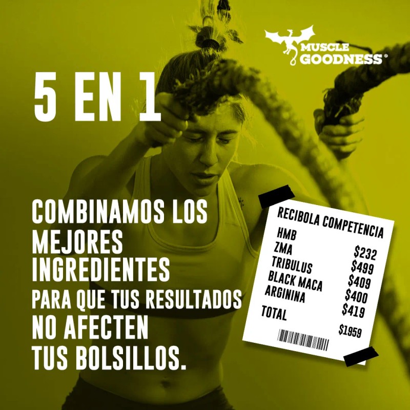 Teston Gold 5 en 1 | Tribulus + ZMA + HMB + Maca + Arginina | 60 Cápsulas