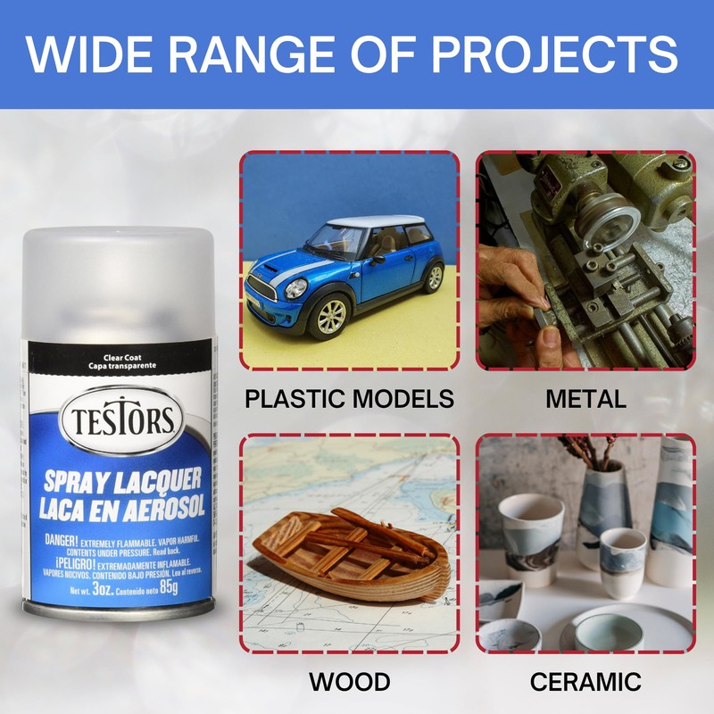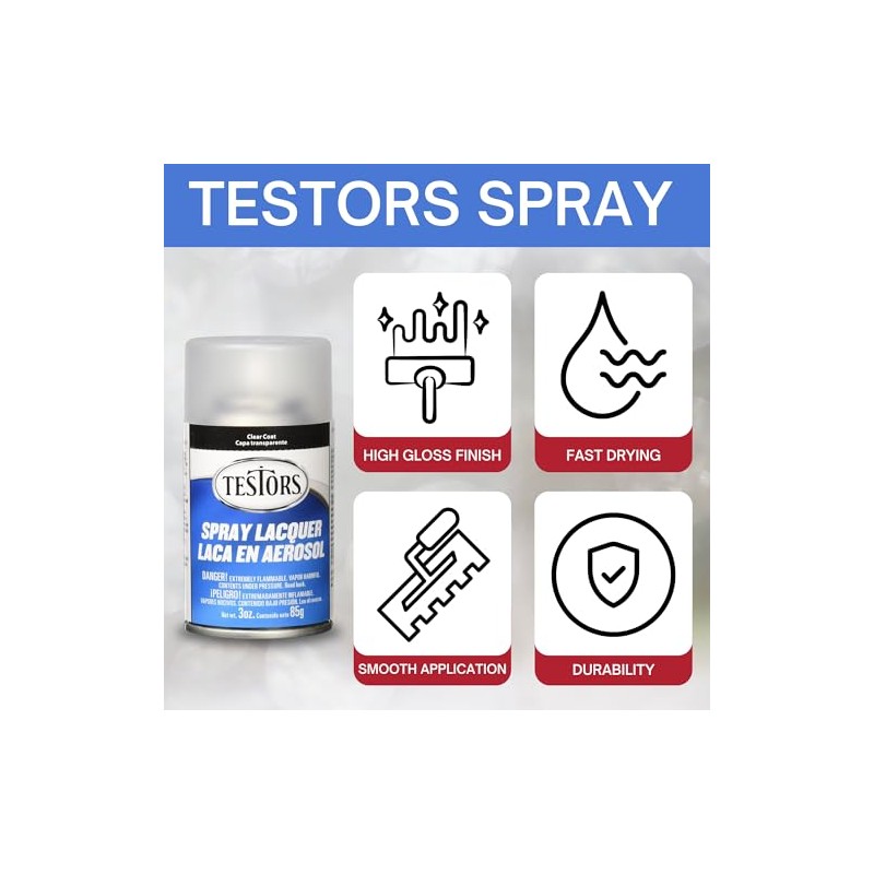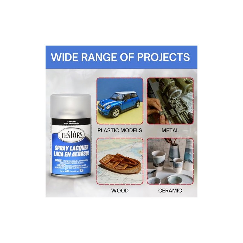 - Fast-Drying and Durable Lacquer: Testors Spray Lacquer dries quickly and provides a durable, long-lasting finish that resists chipping, making it ideal for models, miniatures, and other detailed projects.