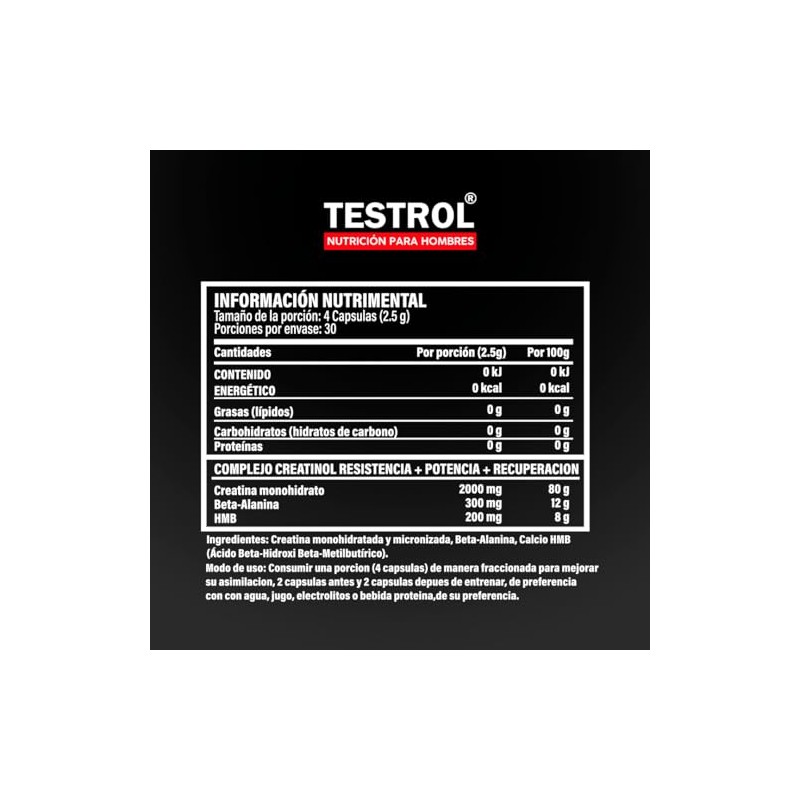 🌟 ⭐ Testrol | Creatina Platinum | HMB y Beta Alanina | Suplemento para Apoyo a Potencia, Resistencia y Rendimiento Físico | 120 Cápsulas ⭐ 🌟