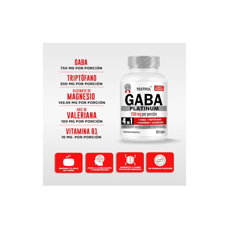 - FÓRMULA: Gaba Platinum 4 en 1 combina GABA, triptófano, magnesio, valeriana y vitamina B1 en cápsulas fáciles de tomar. Una mezcla de nutrientes y extractos naturales diseñada para complementar la dieta diaria y apoyar el bienestar general.