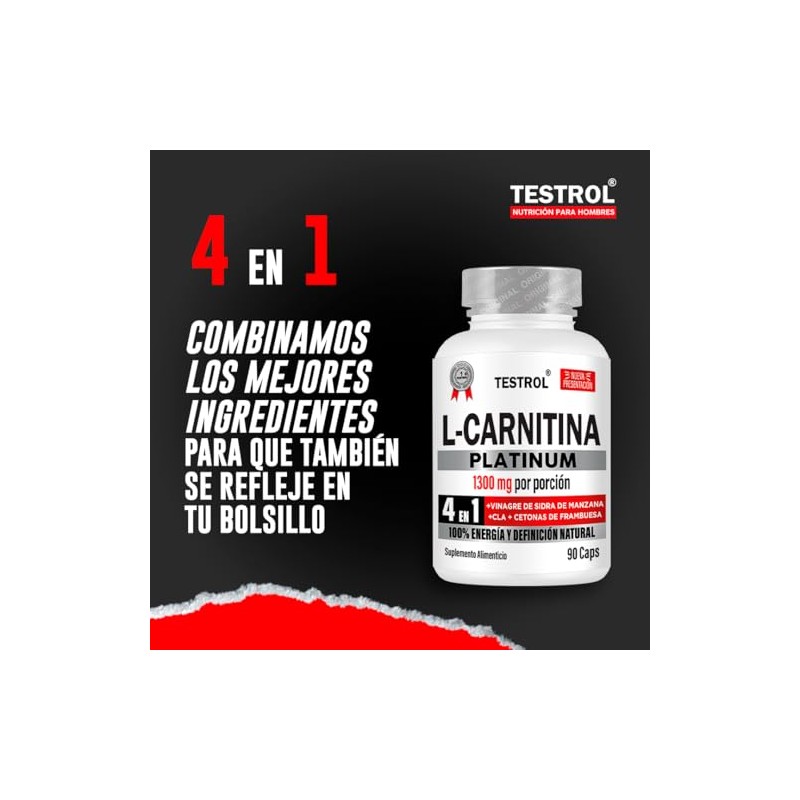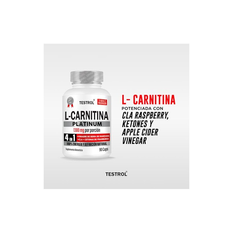 Testrol L-Carnitina Platinum 1300 mg Con Vinagre de Manzana, CLA y Cetonas ...