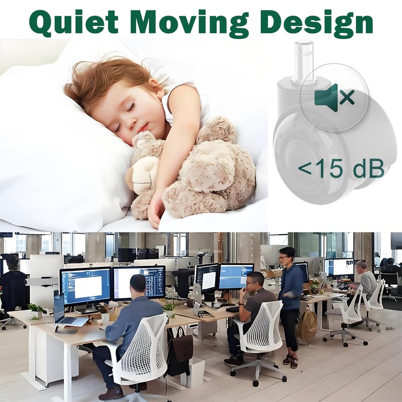 - 【Quiet and Smooth】 These desk chair casters wheels are made of elastic polyurethane, which can keep quiet when rolling. The precision ball bearing of the steering part enable the swivel casters to roll flexibly and smoothly.