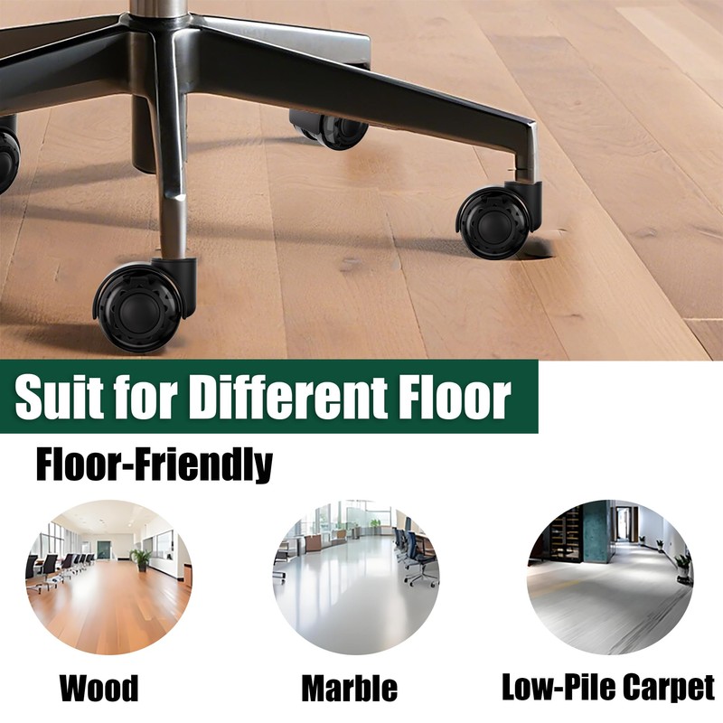 - 【Suitable for Various Floor】2 inch Office chair wheels are great for use on a variety of flooring surfaces, including wood floor, hardwood floor, tile floor, marble floor and low-pile carpet floor. (But it is not recommended to use it on high-pile carpet) The upgraded non-marking elastic polyurethane material ensures that the floor from damage and scratching.