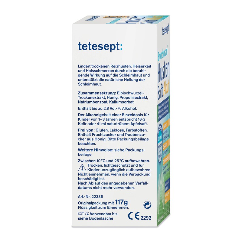 tetesept tetesept Bronchosan Husten Akut Saft – Erkältungsmittel bei trockenem Erkältungshusten – Wohltuend und beruhigend, 1 x 117g