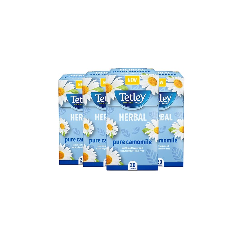 - Contents: 4 x Box of 20 Tetley Pure Camomile, Total of 80 Teabags, 4092A-4