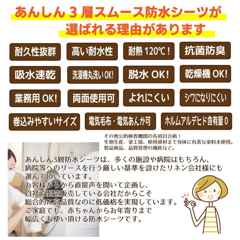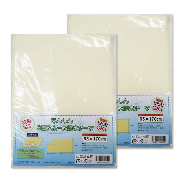 Tetote Waterproof Sheets, 3 Layers, Smooth, 2 Pieces, Dryer OK, Single Sided, Heat Resistant, Long Lasting, Electric Blanket Acceptable, 37.4 x 66.9 inches (95 x 170 cm), Smooth, Quick Drying, Antibacterial, Washing Machine, Dehydration, Name Tag Include