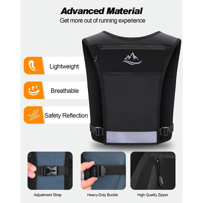 Multiple Storage Pockets: Seven versatile pockets offer ample storage for your phone, water bottle, keys, gels, and other essentials, making this running water vest perfect for running, cycling, and hiking.