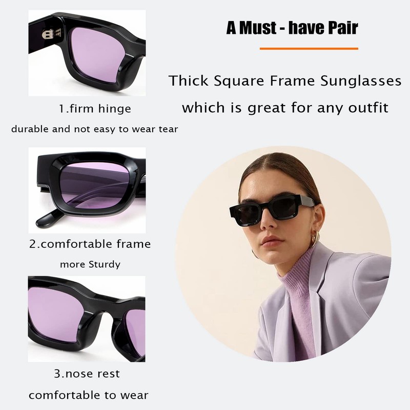 - PREMIUM MATERIAL - Chunky rectangle polarized sunglasses are made of premium polycarbonate lens PC temples. A reinforced metal hinge is designed to prevent the loosening of screws and makes the small sunglasses for men women smooth for opening and closing and look more delicate. Ergonomically designed, make wearing more comfortable.