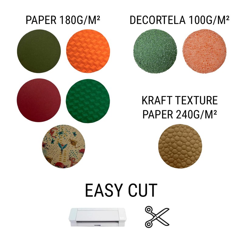 - 【KIT WITH 24 SHEETS】The kit consists of 24 sheets, three sheets of each color. The sheets of paper in 3D Textured Green, 3D Textured Orange, Red, Green, and Safari Textured Kraft with a weight of 180 gsm. The paper in the Orange and Pearly Green with a weight of 100 gsm and the paper Kraft with a weight of 240 gsm. It comes with a 420 gsm Kraft paper folder.