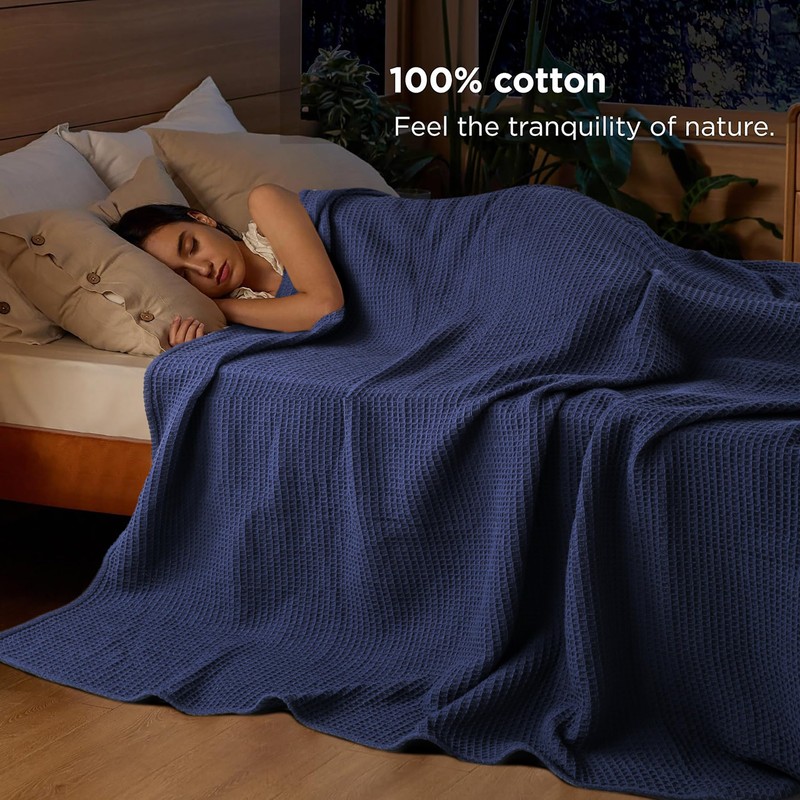 - Warm Yet Lightweight: Crafted from premium long-staple cotton, this waffle blanket offers a harmonious blend of warmth and weight. Ideal for cuddling up, its soft and soothing fabric will envelop you in comfort and tranquility.
