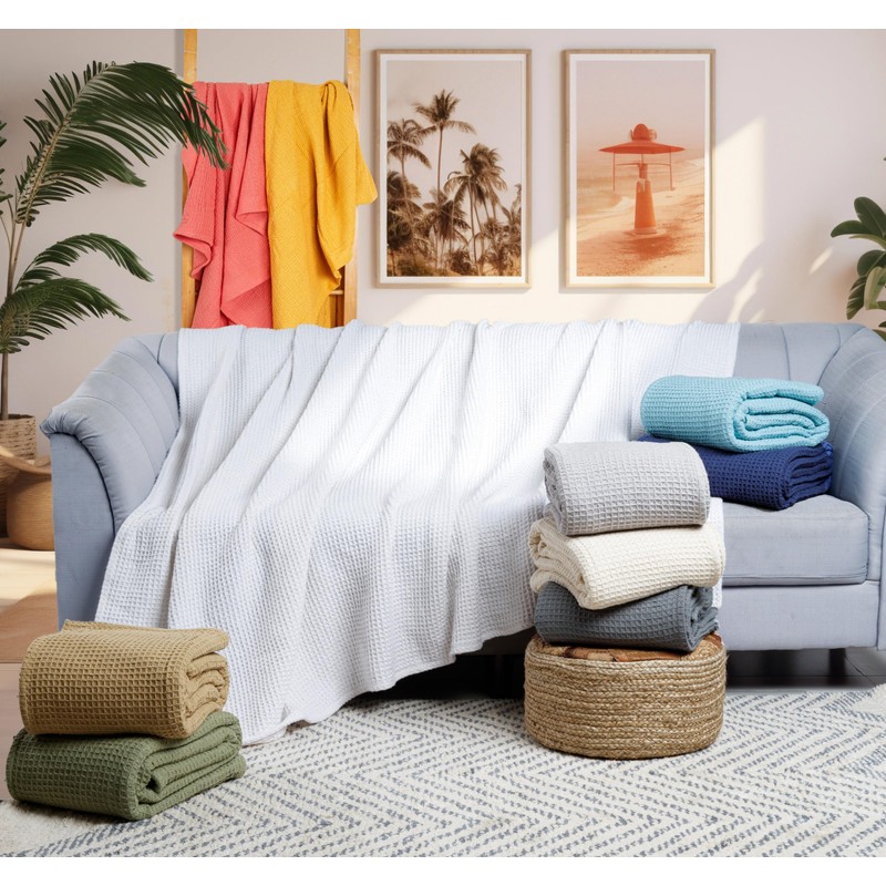 - Versatile Blanket: Beyond its traditional use as a bed or sofa blanket, our waffle blanket can be used as a bedspread or layered on your bed. It's also perfect for outdoor activities like picnics, travel, backpacking, or even napping in the office or car. To prevent snagging, we advise against allowing pets to play on the blanket.