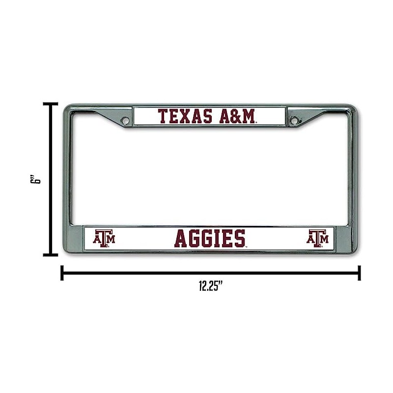 Texas A&M Aggies - 12" x 6" Standard Size - Chrome Metal License Plate Frame