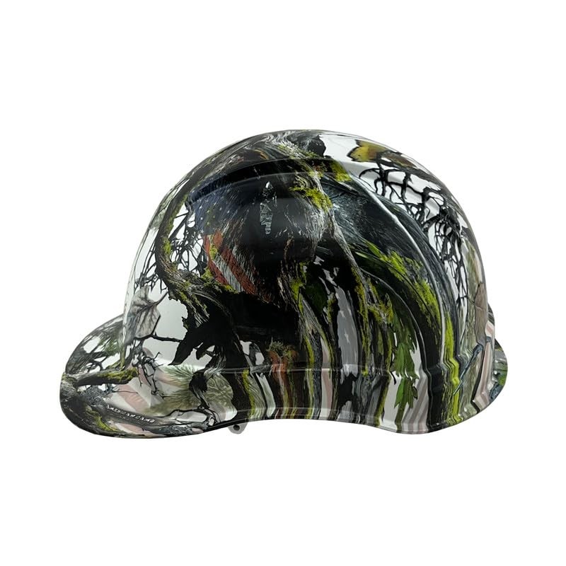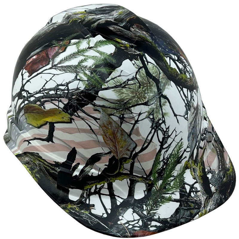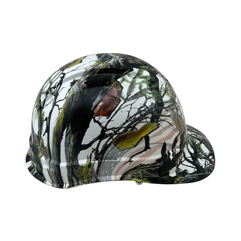 Texas America Safety Company Camo Hydro Dipped American Flag Print Hard Hat | ANSI Type 1 Class C, E, G Hard Cap w/ 6-Point Suspension, Adjustable Ratchet | Safety Gear