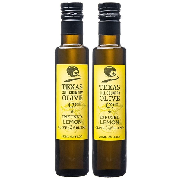 Texas Hill Country Olive Co Lemon Infused Olive Oil - Cold Pressed Gourmet EVOO Olive Oil - Great for Dressing Dipping Marinade - No Artificial Flavors or Added Sugar - Made in Texas (8.5 oz, 2 Pack)