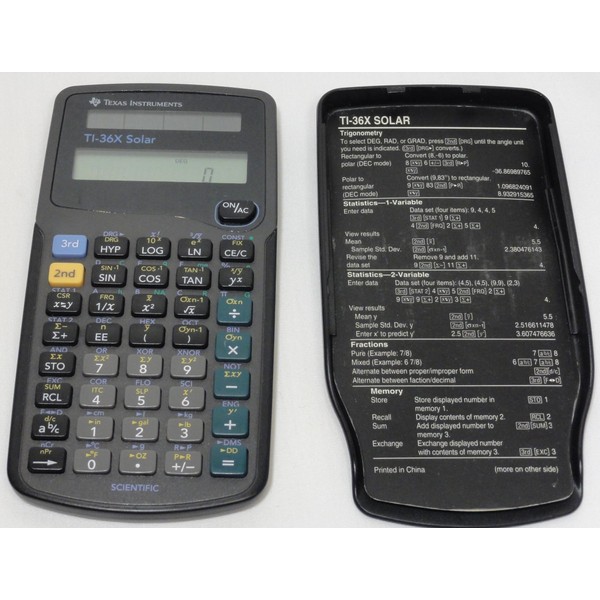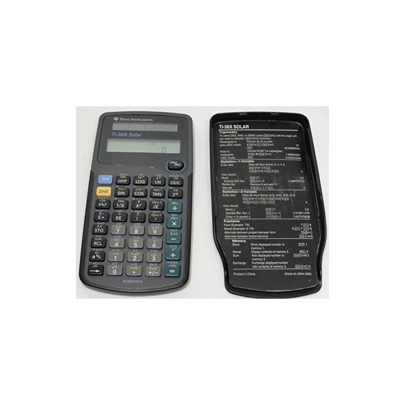 Texas Instruments Inc. TI-36X is a solar scientific calculator with 1 display lines displaying 10 characters with 3 items memory with slide case.