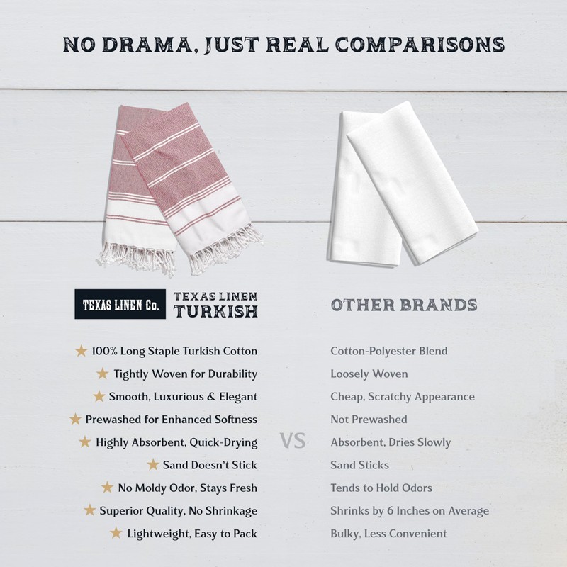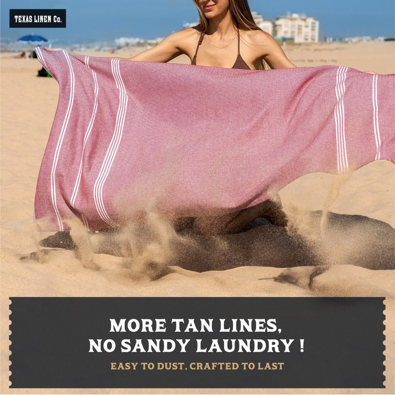 - Dry Off in a Flash - Absorbent & Quick Dry Beach Towel: Dive into the beach bliss with Texas Linen Co.’s 100% cotton beach towel. Light, absorbent, and totally stylish, our oversized beach towels wrap around your body and soak up the water in seconds. Unlike traditional terry cloth towels, the turkish beach towel are quick drying and don’t leave a damp smell behind. Psst…they’re also pre-washed for natural softness.