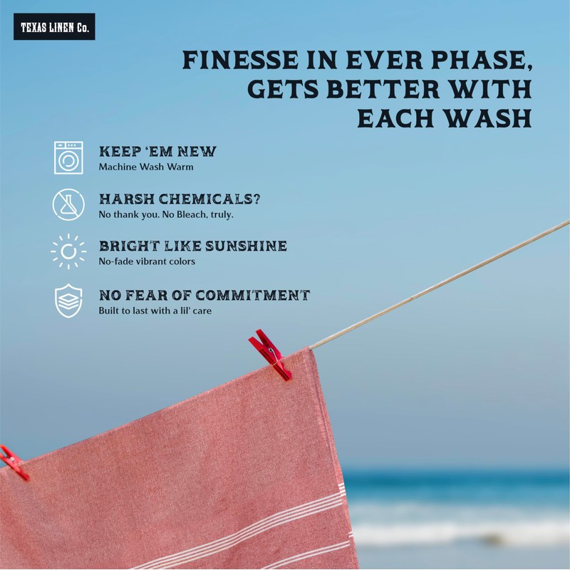 Washing and caring for our beach towel cotton is easy. Wash them in cold water and tumble dry low. Avoid softeners and bleach. Our peshtemel turkish beach towels oversized retain their softness on wash—and do not become rough and scratchy. These absorbent beach towels turkish cotton resists pilling, fraying, and color fading. Note that cotton shrinks in the first few washes and opens up to make the fabric softer.