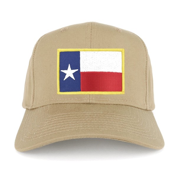Texas State Flag Embroidered Iron on Patch Adjustable Snapback Baseball Cap - Khaki