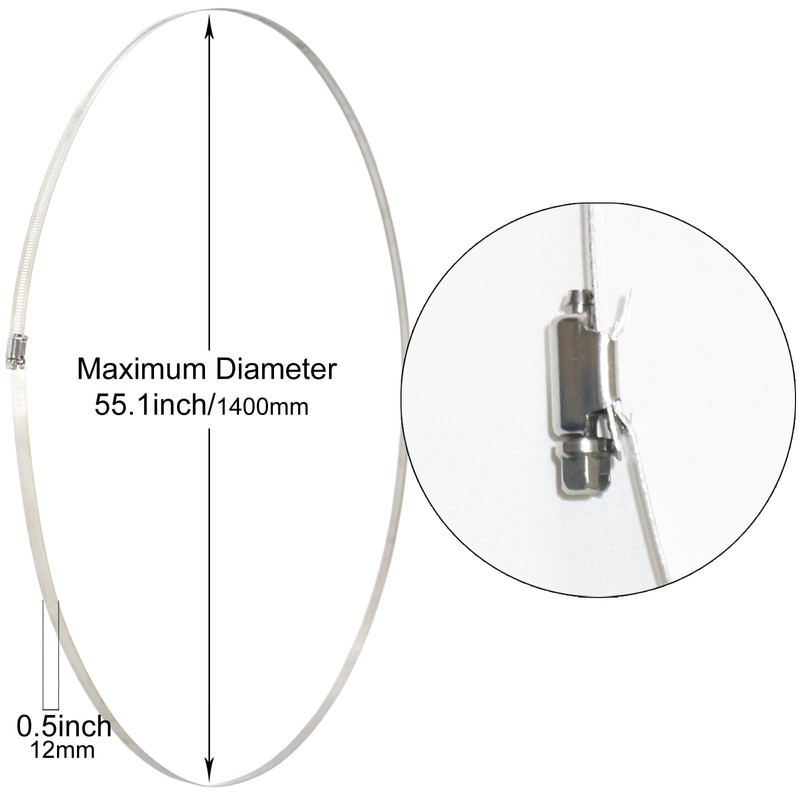● Hose clamp adjustable range: maximum diameter of 55.1 inches (Circumference of 173.1 inches/4398 mm)