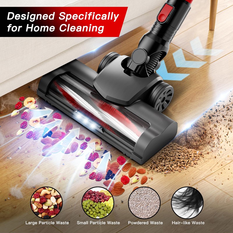 - 【Brushless Motor】: This cordless vacuum cleaner is powered by a high-quality brushless motor, designed specifically for everyday use. It excels at removing dust, pet hair, and small debris from both hard floors and low-pile carpets, making quick cleaning a breeze.
