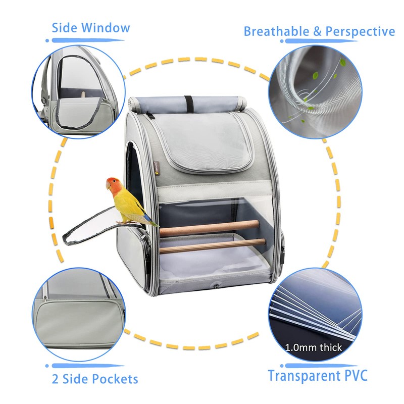 - FREE UP YOUR HANDS - This bird carrier is portable by the top soft handle, also backpacking by the padded double-strap with secured chest buckle for outdoor. Suggested for Green Cheek, African grey, Sun Conure, Mini Macaws, small Cockatoos, Cockatiels, Lories, Parakeet and other small, medium birds.