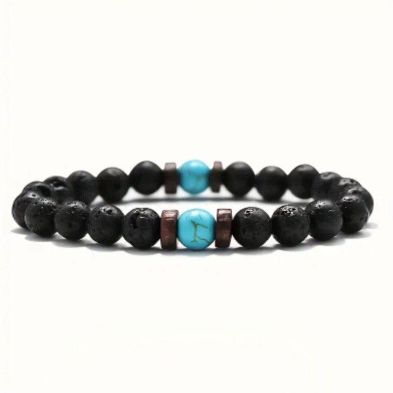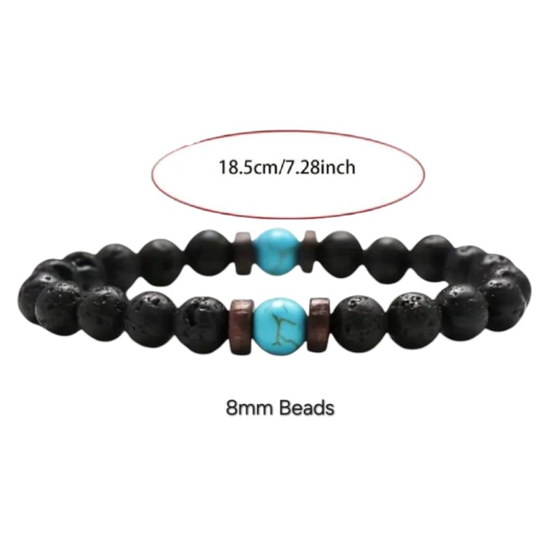 Textiles 4 Home Natural Black Lava Rock Beaded Bracelet Lava stone, Wood and Chakra stone, Surfer Boho Style Fashion Jewellery for Men Women Turquoise