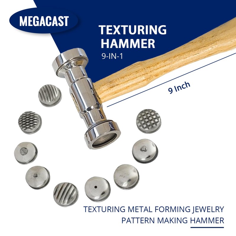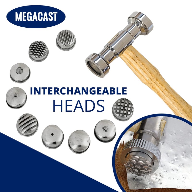 - Design: This Texturing Hammer comes with 9 Interchangeable heads in different patterns and a polished wooden handle. Each hammer face is securely attached with a threaded collar and it is easy to change heads.