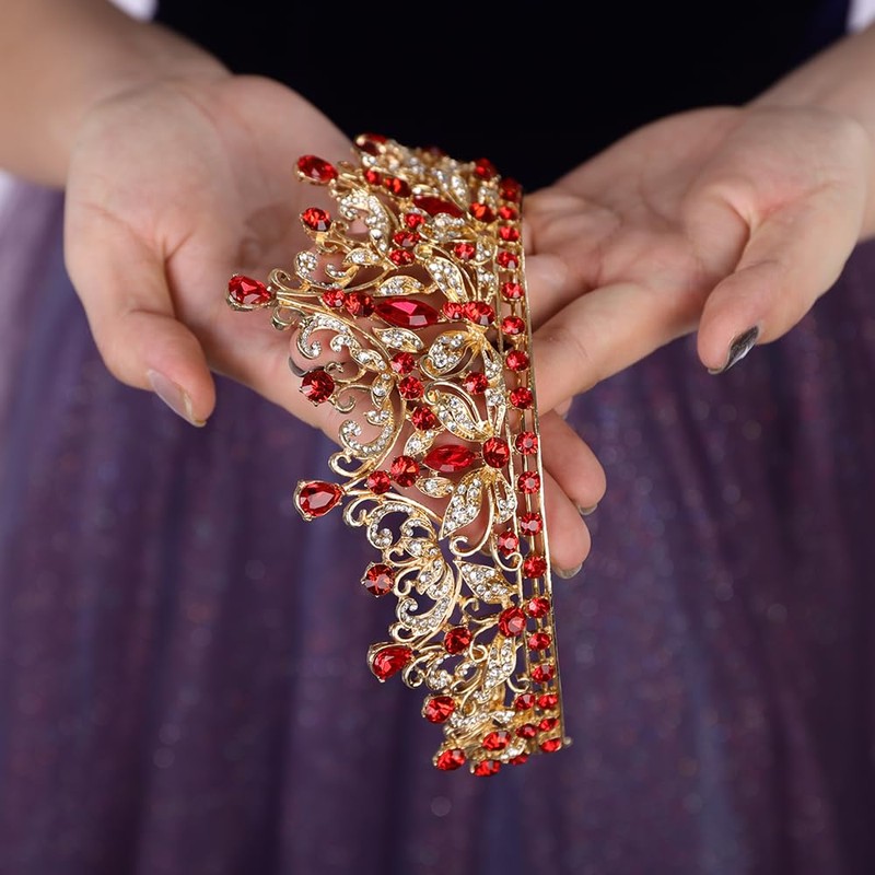 - Vintage red rhinestone crown tiara is fit for women,brides and bridemaids,exquisite and unique design,will add more charm for your outfit.