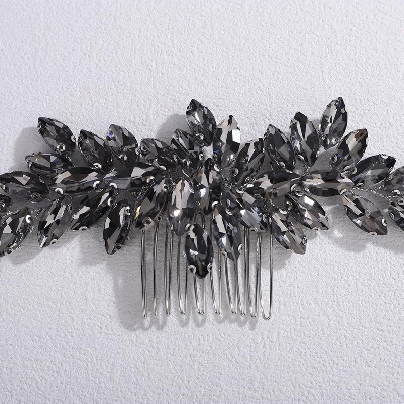 - Sparkly grey crystal rhinestone hair comb for women party prom wedding and evening,exquisite and unique design,will add more charm for your outfit.