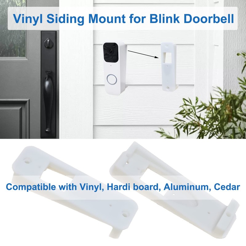 - The Mount for Blink Doorbell Made of Sturdy Resin.Fits on any Standard style siding.Package Contents: 1 Mount and two Mounting Screws.