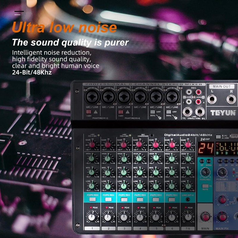 TEYUN 8 Channel Professional Portable Mixer Sound Mixing Console Computer Inp...