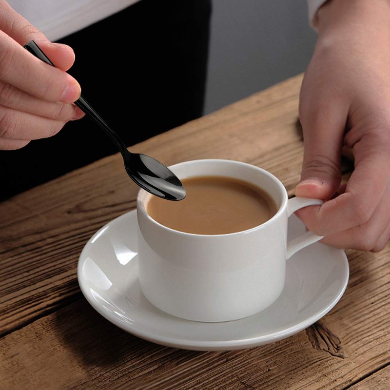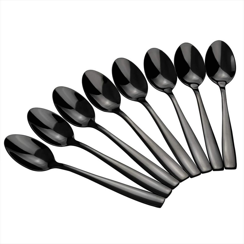 Teyyvn Juego de 8 cucharas de café de acero inoxidable negras, juego de cucharas de espresso Demitasse