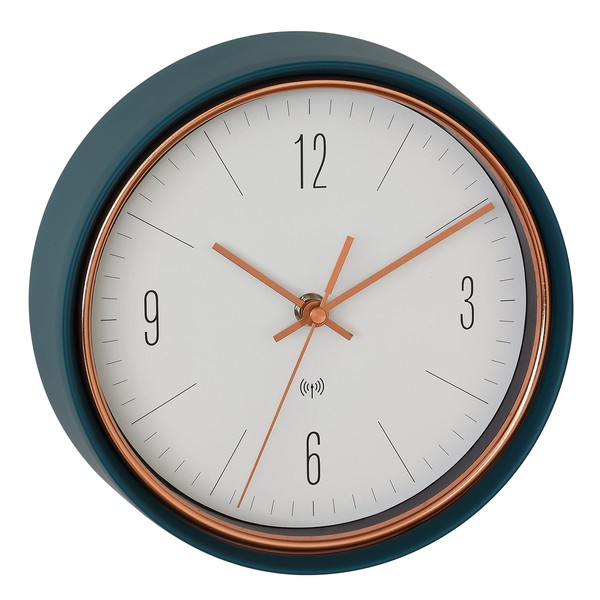 TFA Dostmann Wanduhr analog, 60.3547.20, Funkuhr, aus Metallrahmen mit kupferfarbenen Zeiger, Design, Petrol-grün, 223 x 70 x 223 mm
