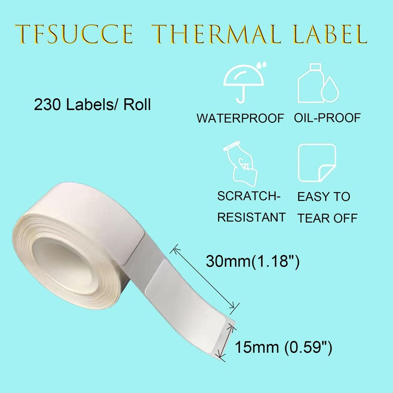 TFSUCCE White Label Print Paper 15mmx30mm (0.59" X 1.18"), 230 Labels/Roll Thermal Stickers Waterproof Self-Adhesive Multipurpose Labeling Tape Household Storage Labels