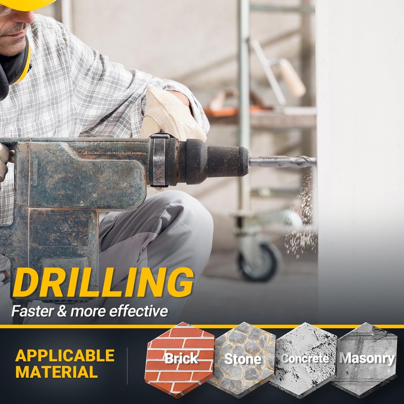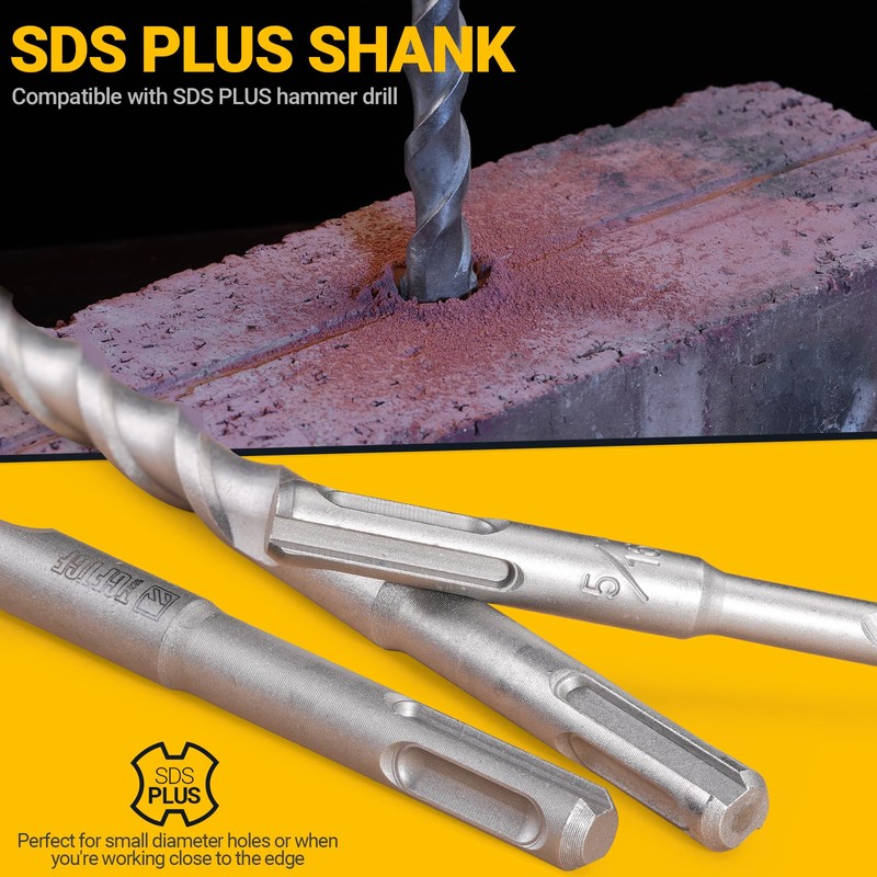 - 【SDS Plus Shank & Widely Compatible】Compatible with most brands of SDS Plus electric hammer drills on the market. The SDS plus bits can be quickly replaced and provide stable and precise operation for DIY and home projects. The sturdy head is ideal for high-impact applications. The SDS plus bit is used with the electric hammer drill to drill, cut and groove in concrete, masonry and bricks.