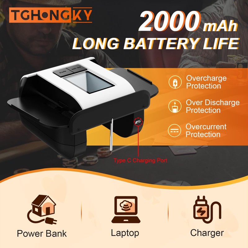 - 2000 mAh battery capacity: the rechargeable poker mixing machine is of type C charging type (comes with USB cable), large 2000 mAh battery capacity, environmentally friendly for a long battery life. The refillable card mixer is low noise, highly efficient and stable.