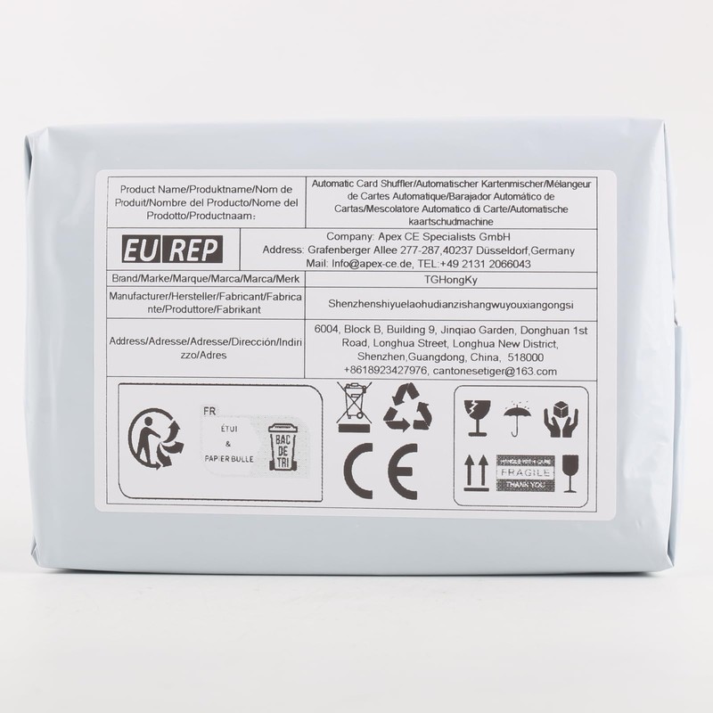 - Intelligent Sensor & New Design The roller structure of the automatic card shuffler and smooth operation perform automatic physical mixing. The infrared sensor scans and detects playing cards and stops when mixing is completed accurately. New innovative wing hanging pin design that resists the impact of fast mixing and ensures neat batteries.