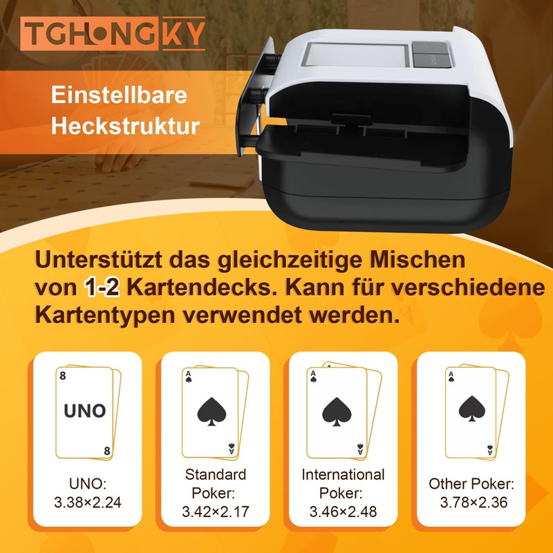 - Gute Wahl für Spiele: Die neue Generation des automatischen Kartenmischers ist ein idealer Partner für Familie, Freunde oder Unternehmen bei Partys, Camping und Reisen. Er kann auch bei Kartenwettbewerben eingesetzt werden, um Fairness zu gewährleisten. Der Kartenmischer mit 2 Kartendecks ist klein und tragbar und kann jederzeit und überall gespielt werden.