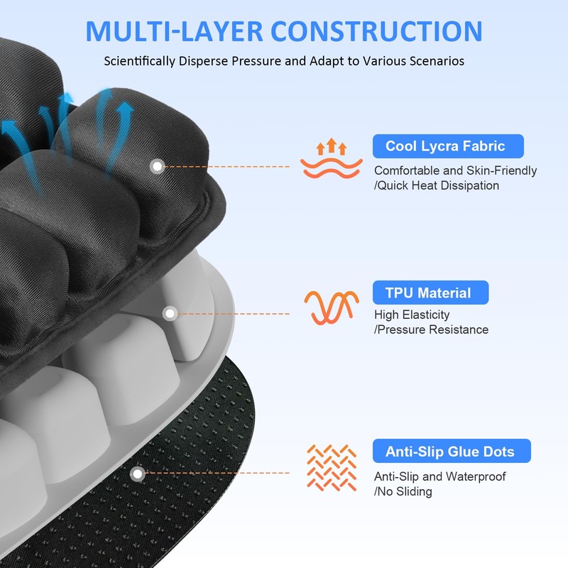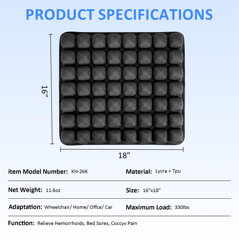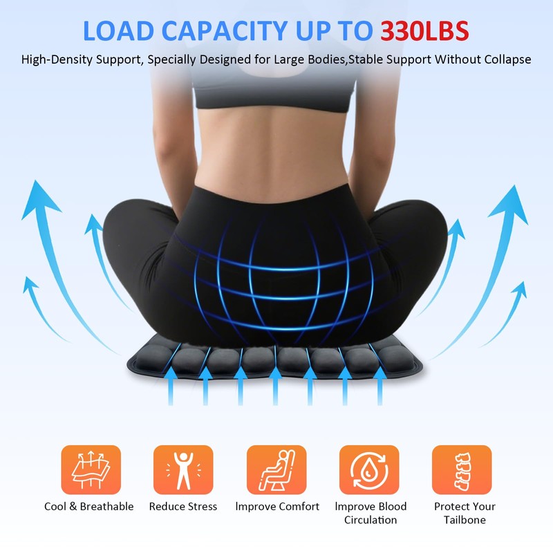- 330-pound Heavy-Duty Leak-Proof Guarantee: 56 reinforced air chambers evenly distribute weight, ensuring zero leaks even under heavy use. Reinforced seams extend the lifespan of these products by up to four times, making them ideal for wheelchairs, truck seats, long trips to the office, and bumpy road trips.