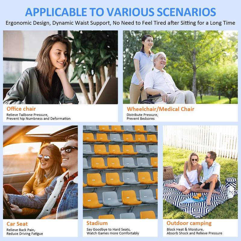 - Adjustable hardness Customize your comfort: This inflatable chair cushions can control the air pressure, 80% hard to support the waist, 40% soft to provide a comfortable sitting feeling. It is very suitable for people who need to sit for a long time at work.