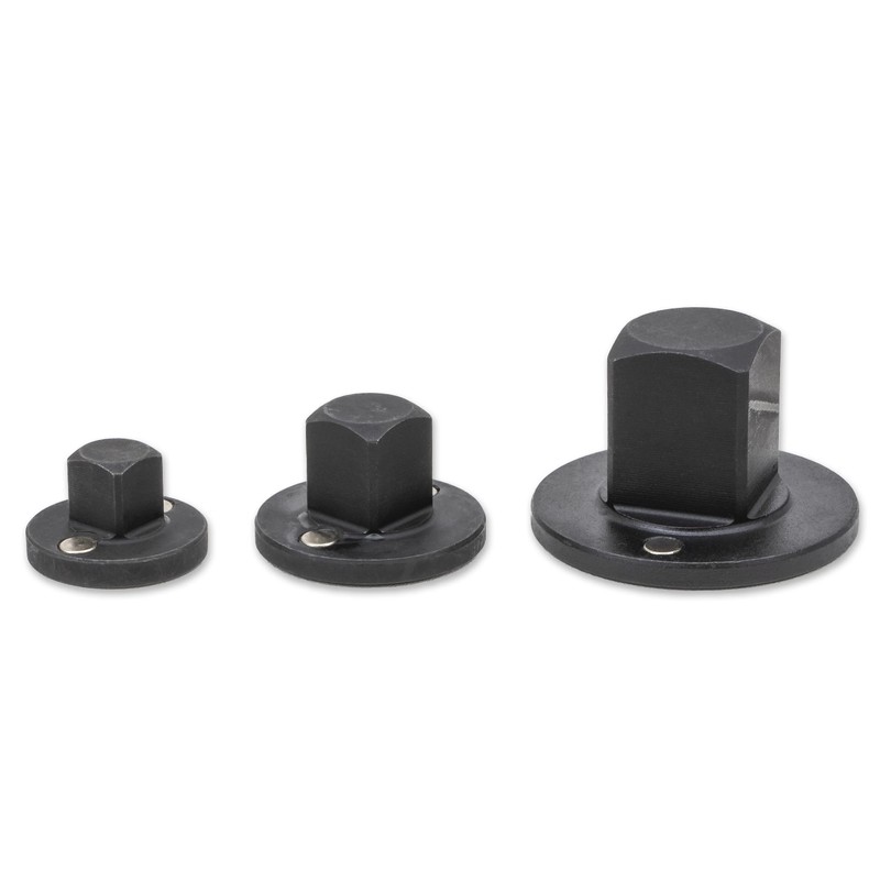 These unique socket adapters allow you to reduce the drive of your sockets without increasing your tool height. The low profile design allows for use in a wide range of applications. Great for working in tight areas. These adapters feature a magnet retention device to keep them attached to the socket. Designed for impact or hand tool use. Made from high-strength, heat-treated Chrome Vanadium steel and are treated with a Manganese Phosphate coating to resist corrosion.