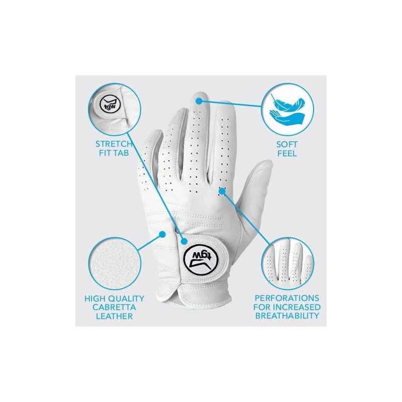 TGW Men's Tour Cabretta Golf Glove Regular White X-Large Left